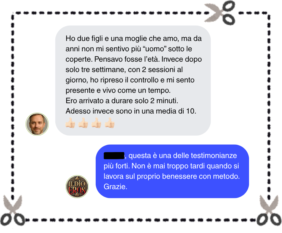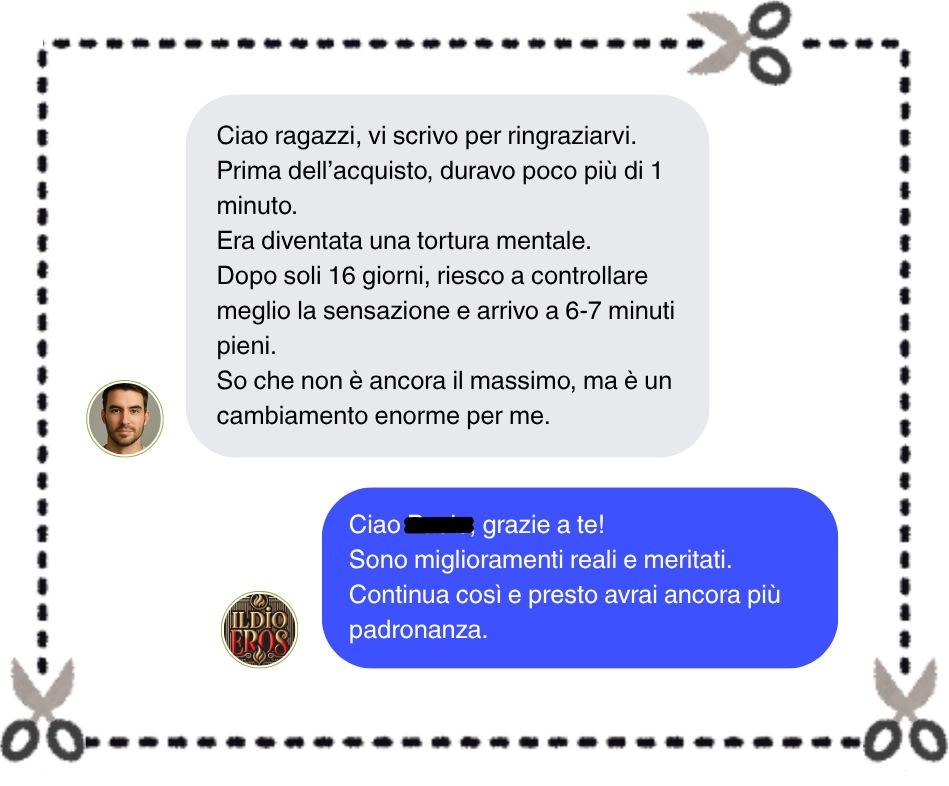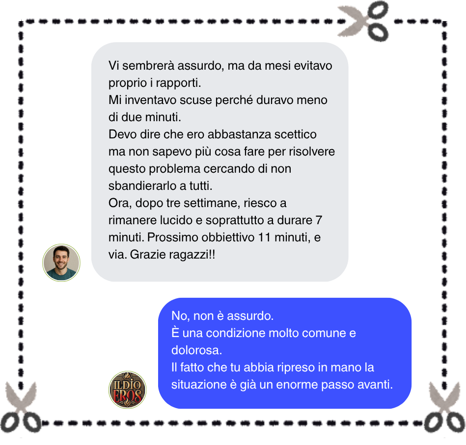 Per poter aiutare tutte le persone che hanno difficoltà con l’eiaculazione precoce e vogliono tornare ad avere fiducia in se stessi, abbiamo creato “Come durare tutto il tempo che vuoi”